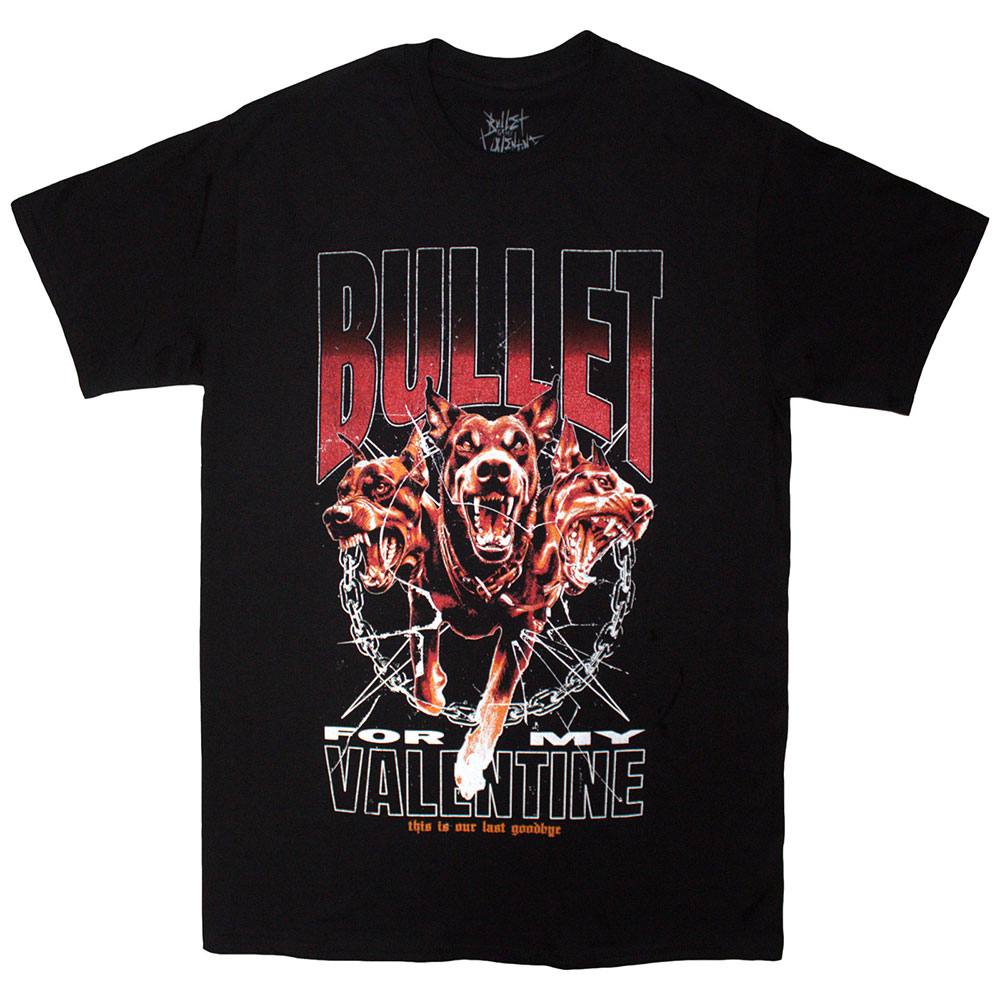 Pridobite uradno licenciran Bullet For My Valentine T-Shirt z edinstvenim motivom Last Goodbye Dogs, ki odraža moč in čustva skupine. Izdelan iz mehke bombažne tkanine za udobje, ta T-shirt je popoln za vsakodnevno nošenje ali koncerte. Kratki rokavi in okrogel izrez zagotavljajo klasičen videz, medtem ko motiv na sprednji strani poudarja vašo navezanost na metal sceno. Idealno za oboževalce, ki želijo izraziti svojo strast do glasbe. Nakupite zdaj na Red Rabbit in dopolnite svojo garderobo z avtentičnim rock pridihom.